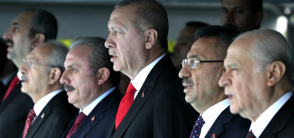 Και για όποιον εξακολουθεί να έχει αμφιβολίες, όλες οι μεγάλες κοινοβουλευτικές δυνάμεις σήμερα στην Τουρκία, των (φιλο)Κούρδων εξαιρουμένων, (το κυβερνών Κόμμα Δικαιοσύνης και Ανάπτυξης AKP, το Ρεπουμπλικανικό Λαϊκό Κόμμα CHP, το Κόμμα Εθνικιστικής Δράσης MHP και το Καλό Κόμμα İYİ Parti) εξέδωσαν στις 18 Ιουλίου κοινό ανακοινωθέν με το οποίο υιοθετούν ως «κρατική» και «εθνική πολιτική» όλες τις κινήσεις που κάνει το καθεστώς Ερντογάν σε Ανατολική Μεσόγειο, Κύπρο και Αιγαίο, καταγγέλλοντας παράλληλα ως «παράνομη» και «απαράδεκτη» τη στάση της ΕΕ που τόλμησε στις 15 Ιουλίου να δώσει το πράσινο φως για την επιβολή δέσμης κυρώσεων κατά της Τουρκίας.