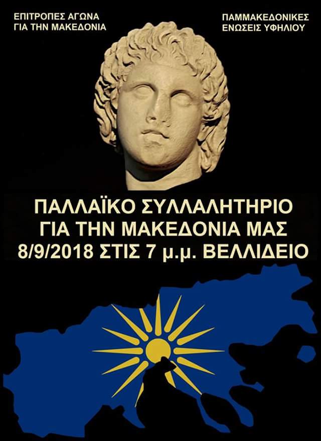 Παλλαϊκό Συλλαλητήριο για τη Μακεδονία, τις 8/9/18, ώρα 7 μ.μ. στο Βελλίδειο - Όλη Ελλάδα εκεί